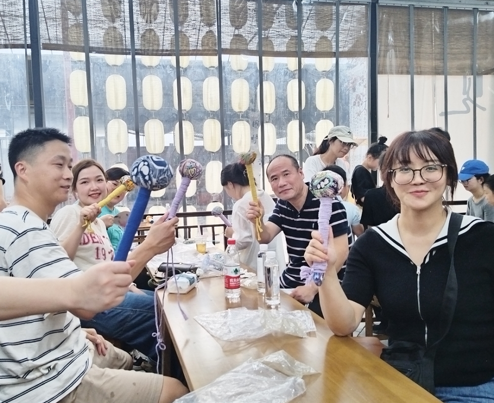 活動還安排了艾草養(yǎng)生錘制作,艾草錘是一種傳統(tǒng)的中醫(yī)工具,用于促進(jìn)血液循環(huán)、緩解疼痛和調(diào)理身體。在老師的演示和指導(dǎo)下,大家瞬間變成了技藝小能手,無論是大人還是小孩,都能做出一個個獨(dú)一無二的艾草錘,在制作過程中互相幫助、氛圍融洽,制作完成后現(xiàn)場教學(xué)了如何拍八虛治身體,加強(qiáng)了艾草錘的實(shí)用性。